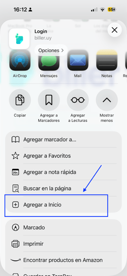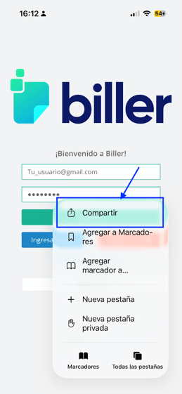 Instalar Biller como app en iPhone